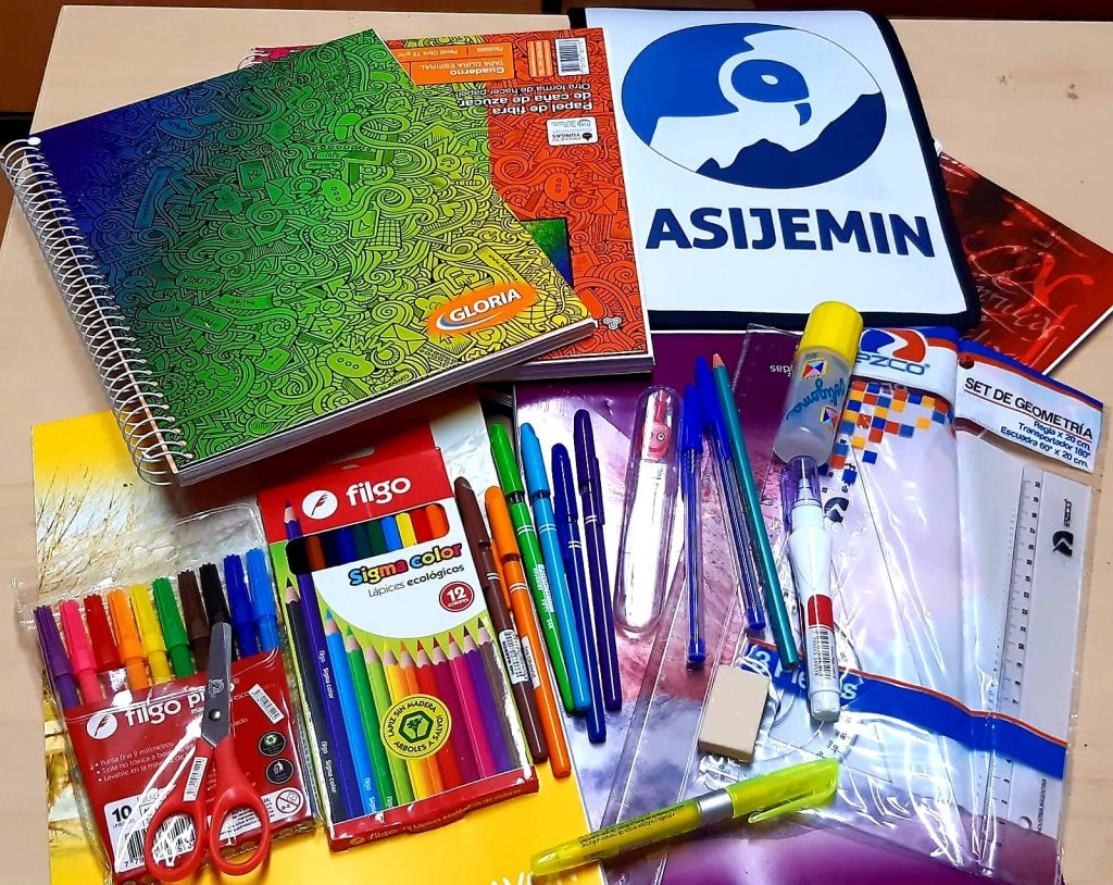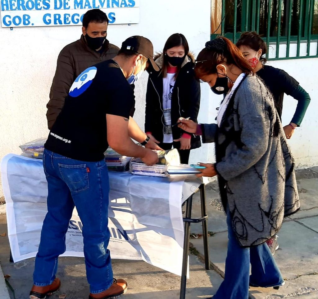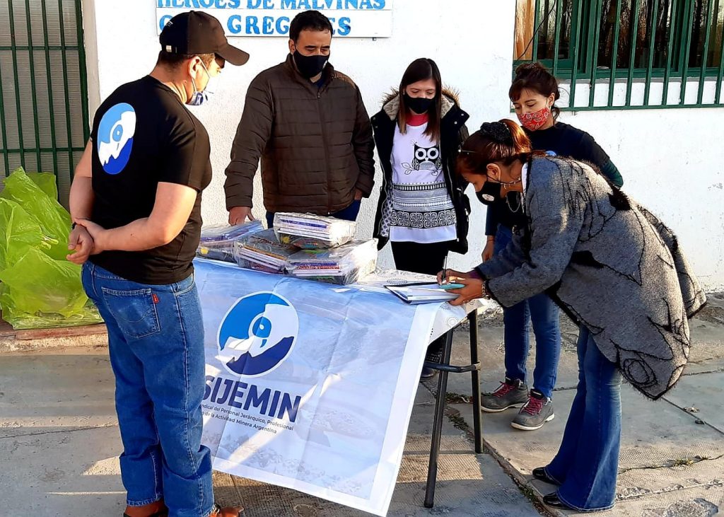 Representados por la Delegación Regional Sur, a través de la compañera delegada de base, Pamela Rosales y el compañero de Comisión Interna, Julián Correa de ASIJEMIN, hicieron la entrega de 19 kit de útiles escolares destinados a las y los alumnos que están residiendo en dicho establecimiento.