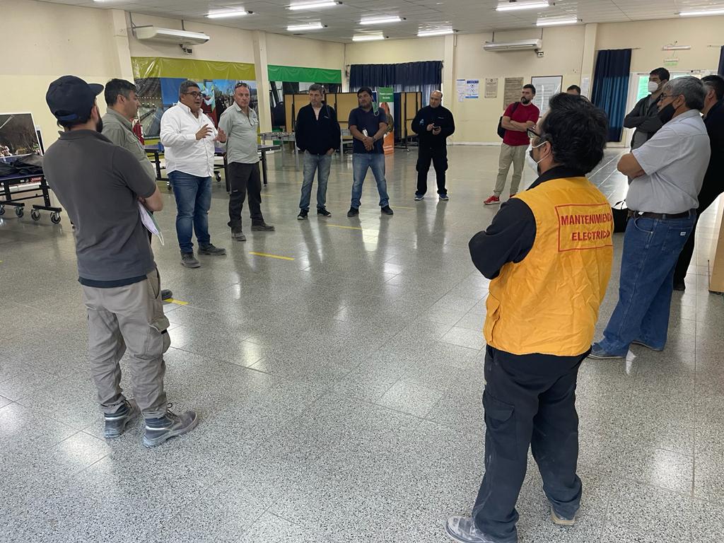 Esta medida, que alcanzará aproximadamente a 600 compañero/as de trabajo de Gualcamayo, tanto de planta permanente como trabajadore/as de empresas contratistas, se estableció a través del encuentro llevado a cabo entre los directivos de Minas Argentinas S.A., integrado por John Cuervo, director ejecutivo; Javier Castro, Jefe de Recursos Humanos y Luis Felipe, Jefe de Administración. En tanto que por ASIJEMIN lo hizo su secretario general Marcelo Mena Muñoz; Director Regional Centro, Esteban Luna; Director Gremial y Organización, Sergio Gómez y el Director de Acción Social y Turismo, Rubén Dufay.