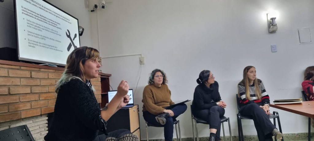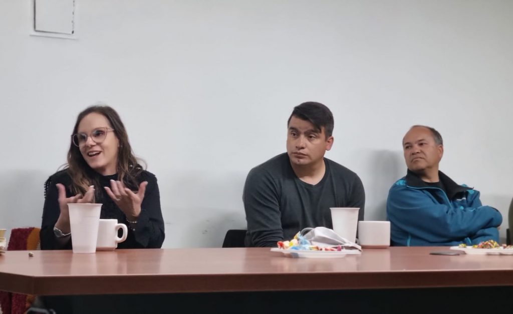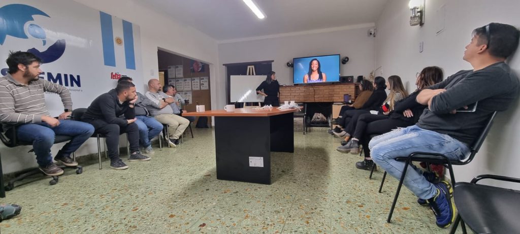 La charla informativa se llevó a cabo en la sede regional del sindicato jerárquico minero y estuvo dirigida por las especialistas en género de SECMIN, Lucía Peyrano y Florencia Aguilar, acompañadas por parte del equipo técnico de la SECMIN, Soledad Laclau y Jessica Yornet. En tanto, por ASIJEMIN, representaron su secretaria adjunta, Carla Costabile; Esteban Luna, Director Regional Centro; y el acompañamiento organizativo del secretario general, Marcelo Mena Muñoz.